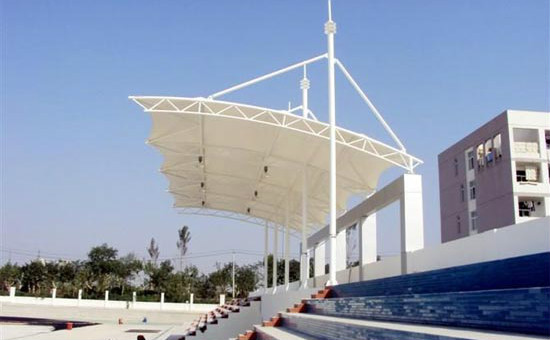 膜結(jié)構(gòu)看臺新式且新奇的構(gòu)造方式,因為其造型設(shè)計灑脫幽美、材料輕巧便于拆卸、有高寬比的自洗特性和耐老化工作能力,很多的新教學區(qū)基本建設(shè)都剛開始選用這類與眾不同時尚潮流的構(gòu)造方式;